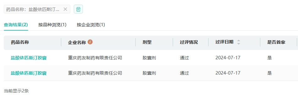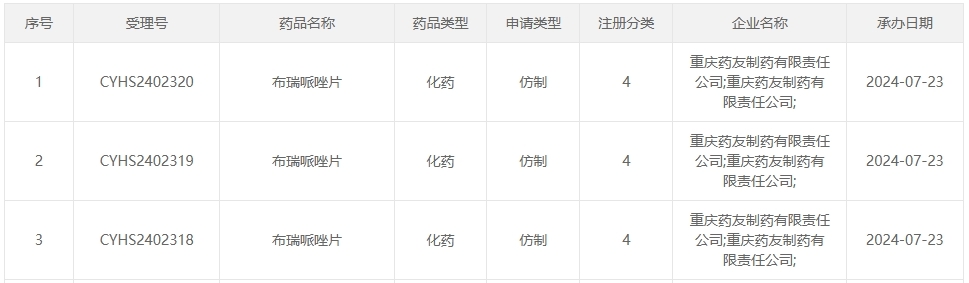 7月23日,据CDE官网公示,重庆药友制药以仿制4类报产的布瑞哌唑片获受理。近日,据NMAP官网显示,该公司的盐酸依匹斯汀胶囊一致性评价补充申请获批,为该品种首家过评的药企。