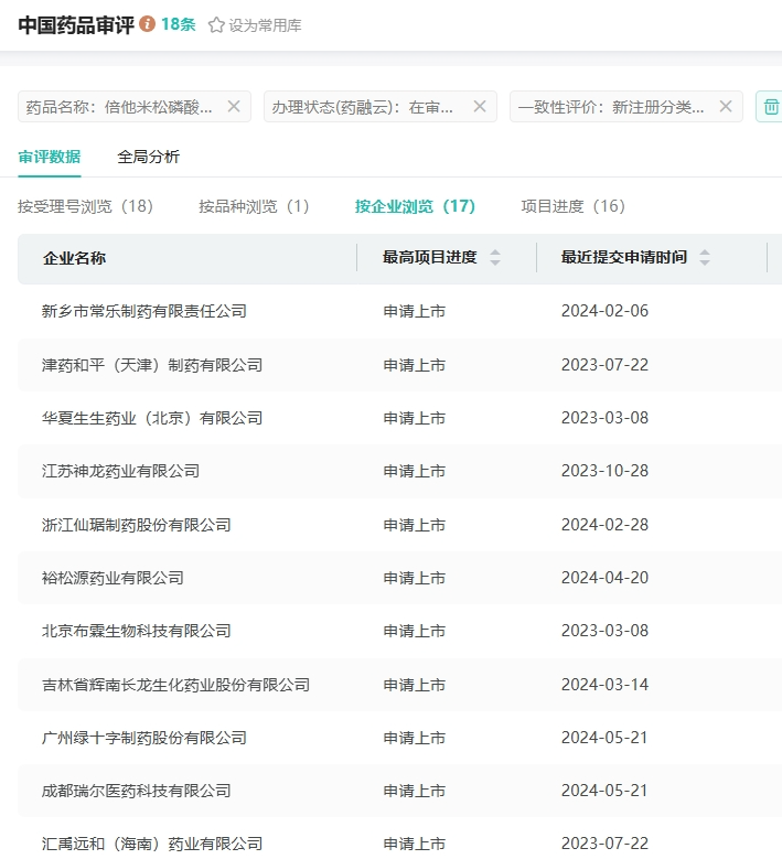 在仿制药布局方面,倍他米松磷酸钠注射液有辰欣药业、华夏生生药业、津药和平(天津)制药、成都瑞尔医药等17家药企提交了上市申请,均在审评审批中。