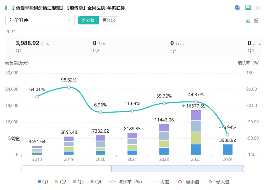 倍他米松磷酸钠注射液临床可用于治疗过敏性与自身免疫性炎症性疾病,如红斑狼疮、风湿性关节炎、哮喘、急性白血病等,也用于某些感染的综合治疗,国内外临床广泛应用。据药融云数据库显示,倍他米松磷酸钠注射液在2023年全国院内市场销售额超1亿元,同比增长近45%。