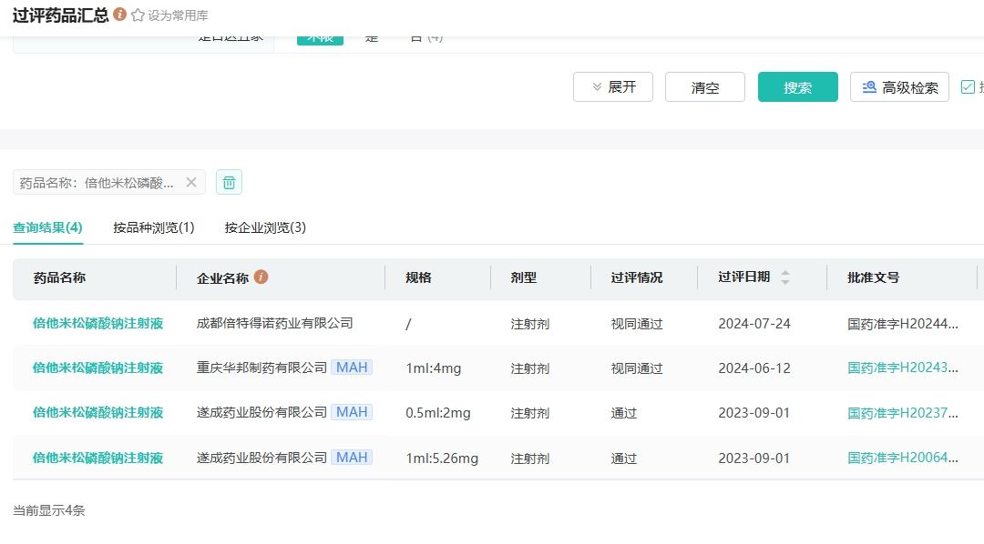 目前,倍他米松磷酸钠注射液在国内有8家药企拥有生产批文,其中重庆华邦制药、成都倍特得诺药业、遂成药业3家药企过评。