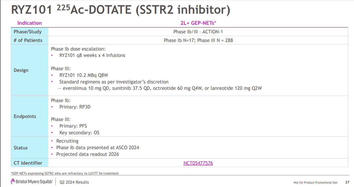 今年6月,BMS表示暂停了核药RYZ101的3期试验的新患者招募,原因是同位素供应短缺问题。当时,百时美施贵宝表示计划在第三季度恢复新患者入组。该研究包括美国、巴西、比利时、加拿大、法国、荷兰和西班牙。