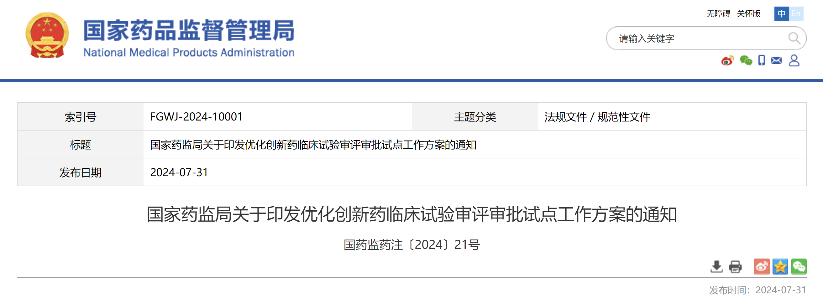 就在昨日(7月31日),国家药监局发布了《优化创新药临床试验审评审批试点工作方案》。