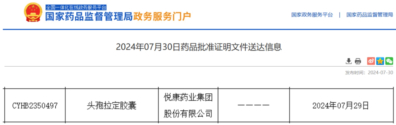7月30日,据NMPA官网最新公示,悦康药业集团的头孢拉定胶囊通过一致性评价。据药融云数据库显示,今年以来,该药企已有5款品种过评。