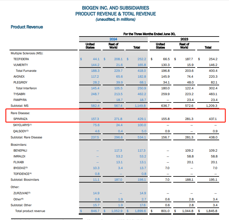 [1] Biogen半年报: