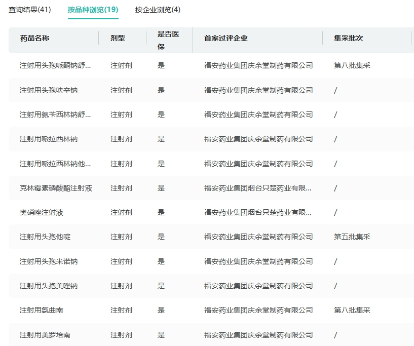 截止目前,福安药业集团在系统用抗感染药物方面有19款过评,其中注射用头孢米诺钠为首家过评系统用抗感染药物。今年以来,该公司有注射用哌拉西林钠他唑巴坦钠、注射用头孢哌酮钠舒巴坦钠、奥硝唑片、帕拉米韦注射液、注射用伏立康唑、注射用头孢唑肟钠6个系统用抗感染药物过评。