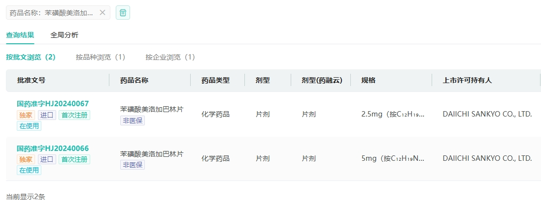 苯磺酸美洛加巴林片(英文商品名TARLIGE®)是第一三共(中国)宣布旗下自主研发的创新药物,2019年1月,该产品首次在日本获批上市,用于治疗周围神经病理性疼痛(PNP)。2024年6月28日,获准进入中国市场,用于治疗成人糖尿病性周围神经病理性疼痛。据药融云数据库显示,原研的苯磺酸美洛加巴林片上市以来,在2023年全球销售额超2亿美元,同比增长达12.26%。