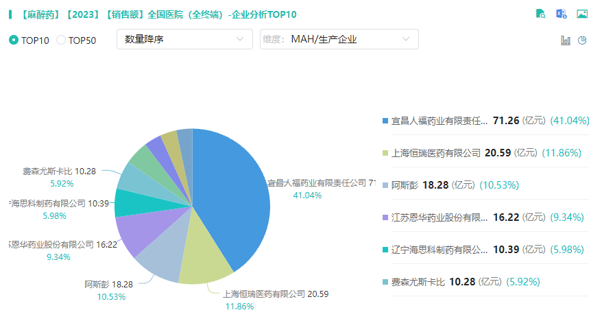2023年医院端神经系统用药-麻醉药销售企业TOP10