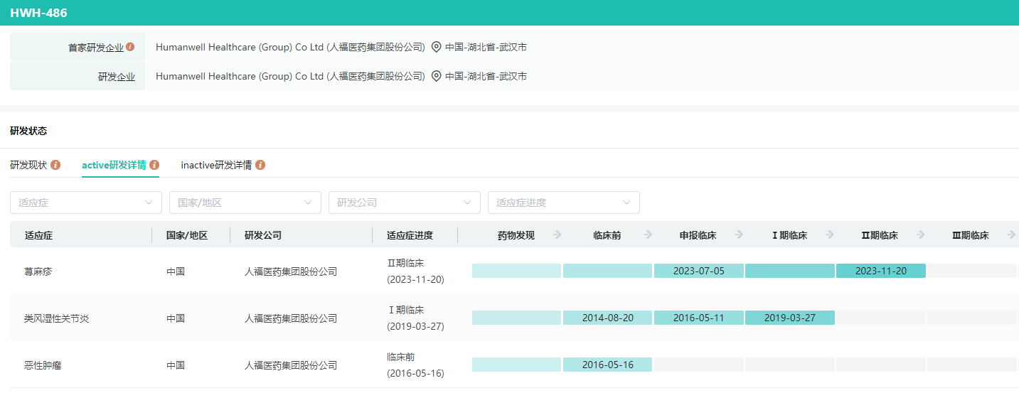 HWH-486研发状态及详细信息查询