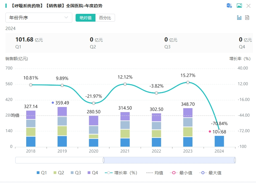 今年以来,海思科(含子公司)有HSK31858片、HSK39004吸入混悬液、HSK39297片、HSK39775片、HSK42360片、HSK44459片等1类新药获批临床,其中HSK31858片、HSK39004吸入混悬液、HSK44459片均为呼吸系统用药,据药融云数据库显示,在2023年全国院内呼吸系统药物(化药或生物药)销售额超340亿元。