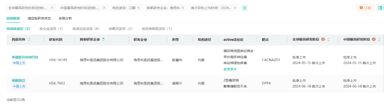 近年来,海思科始终将创新作为公司的核心驱动力,并在此基础上持续加大研发投入,以推动医药领域的科技进步。2024年至今,海思科有苯磺酸克利加巴林胶囊、考格列汀片2款1类新药获批上市。其中苯磺酸克利加巴林胶囊是口服γ-氨基丁酸(γ-aminobutyricacid,GABA)类似物,结合中枢神经α2δ受体,减少钙离子内流及兴奋性神经递质释放,具镇痛、抗癫痫、抗焦虑的活性。2024年5月,该药获批用于成人糖尿病性周围神经病理性疼痛及带状疱疹后神经痛治疗,为国内首例双适应症GABA类似物。