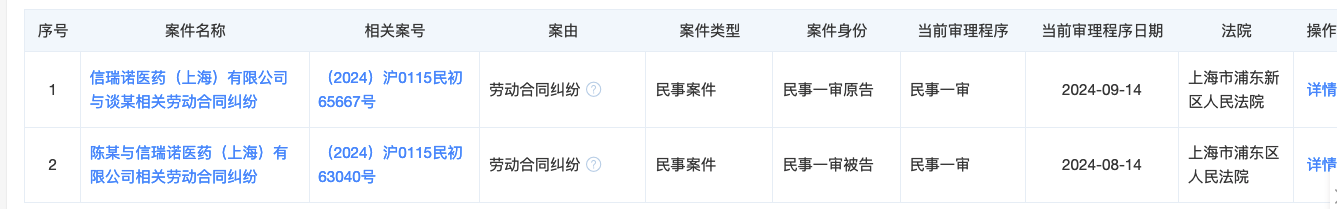值得注意的是,信瑞诺医药仍存在2起劳动合同纠纷。期待尽快有一个好的结果,对公司与员工双赢的解释。公司被收购本是好事,在这个医药寒冬里,企业与个人更需要资金打磨产品、自身,与生活。