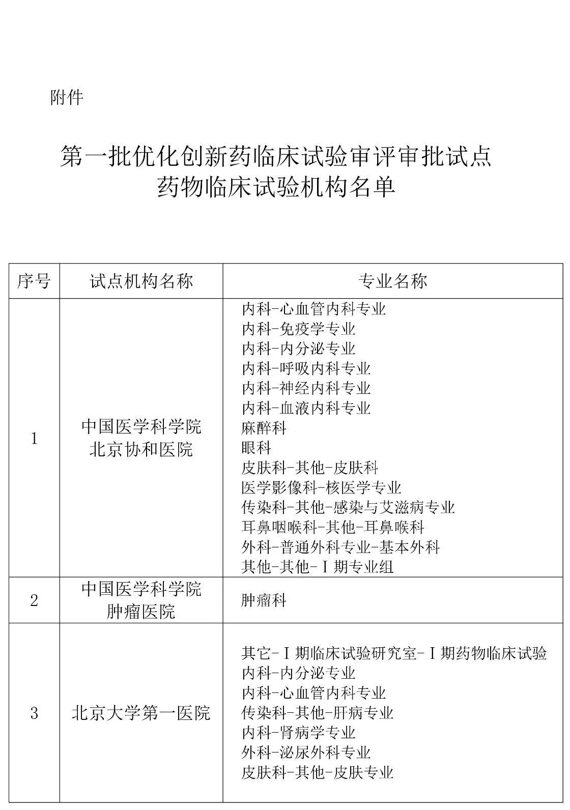 附件:第一批优化创新药临床试验审评审批试点药物临床试验机构名单