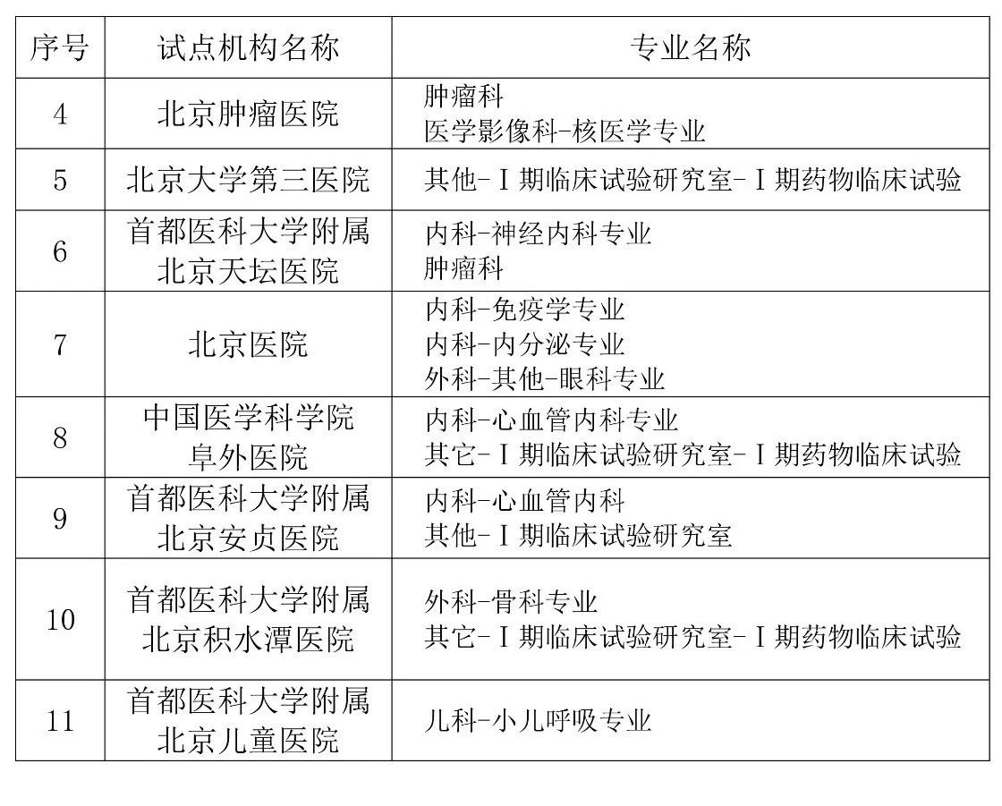 8月9日,北京市药监局发布第一批优化创新药临床试验审评审批试点药物临床试验机构名单名单,第一批共有11家临床机构纳入,分别为: