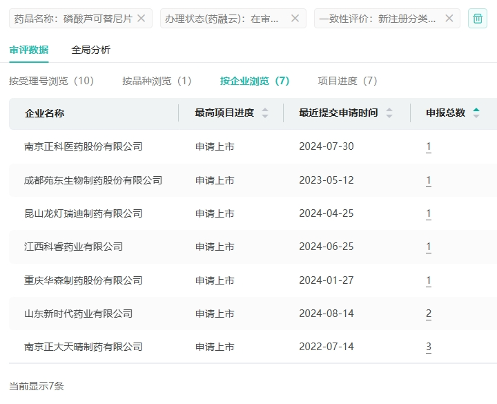 截图来源:药融云中国药品审评数据库
