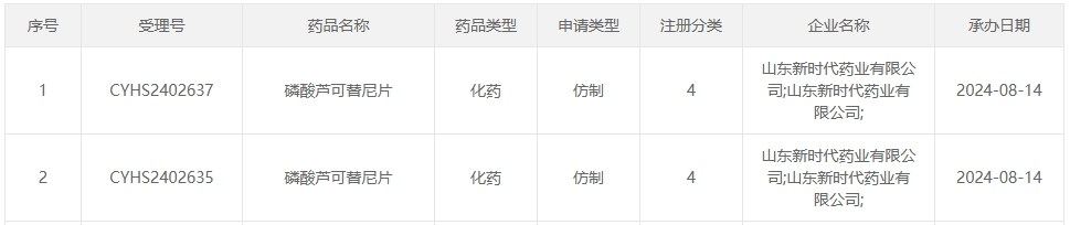 8月14日,据CDE官网显示,山东新时代药业提交的4类仿制药磷酸芦可替尼片上市申请已获受理。据药融云数据库显示,该品种在2023年全国院内市场的销售额达5.3亿元。