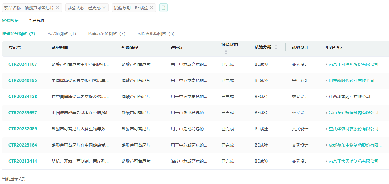 截图来源:药融云中国临床试验数据库