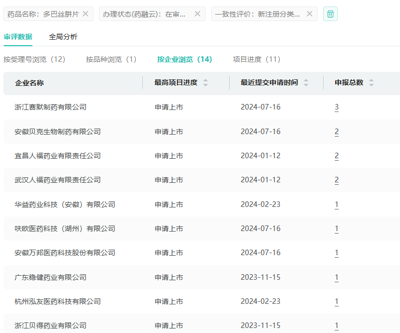 在仿制药布局方面,多巴丝肼片有宜昌人福药业、武汉人福药业、重庆华邦制药、重庆药友制药等14家药企提交了仿制申请,均在审评审批中。