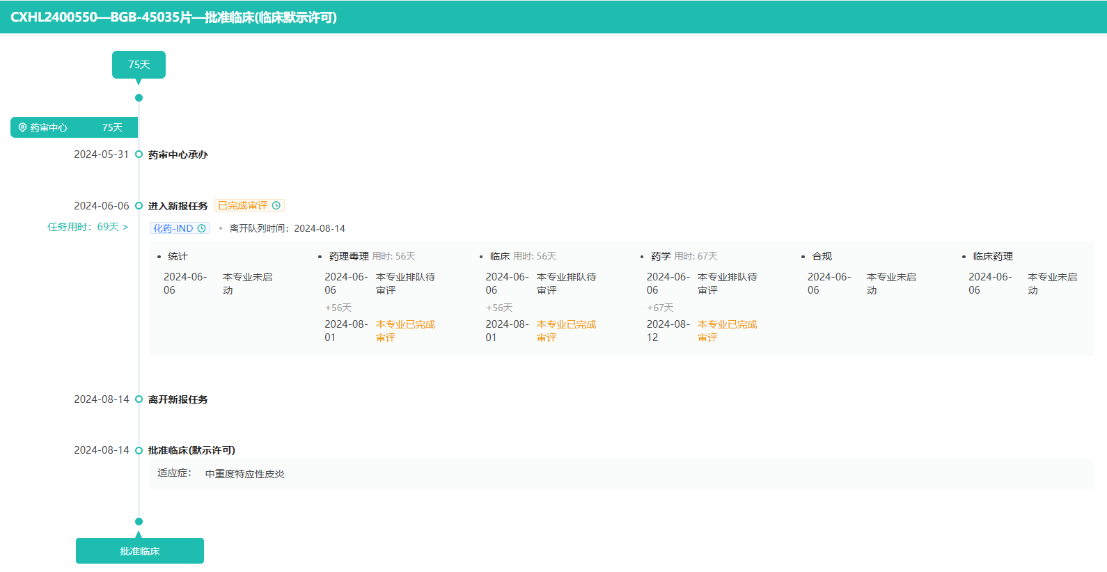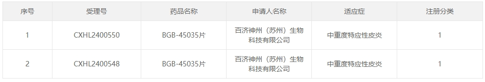8月14日,据CDE官网显示,百济神州(苏州)生物科技有限公司(以下简称“百济神州”)的1类新药BGB-45035片获得临床试验默示许可,适应症为中重度特应性皮炎。据公开资料显示,该药物为一款IRAK4 PROTAC。是百济神州在自有CDAC平台上研发的第二款靶向降解剂。此次获批临床,是百济神州免疫和炎症治疗领域的一项新进展。