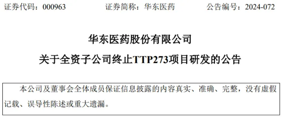 经评估后,华东医药决定终止TTP273项目的后续研发,并集中精力和优势资源全力推进已处于临床研究阶段的HDM1002、HDM1005等创新产品的研究进度。