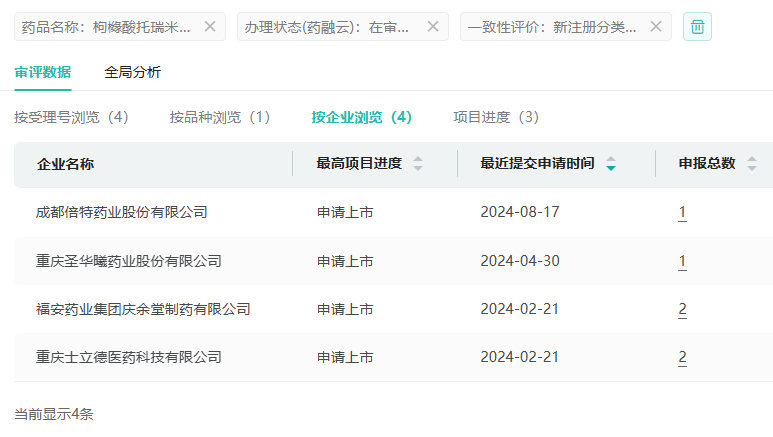截图来源:药融云中国药品审评数据库