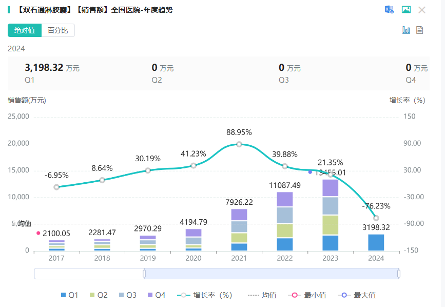 双石通淋胶囊是陕西摩美得气血和制药的独家中成药品品种,主要是清热利尿,化浊通淋。用于慢性前列腺炎湿热壅阻证。症见尿道灼热、小便频急、尿后余沥不尽、尿后滴白、阴部潮湿、会阴、少腹、腰骶部疼痛或不适,舌质红苔黄,脉弦或弦滑等。据药融云数据库显示,双石通淋胶囊在2023年全国院内市场的销售额超1亿元,同比增长达21.35%。