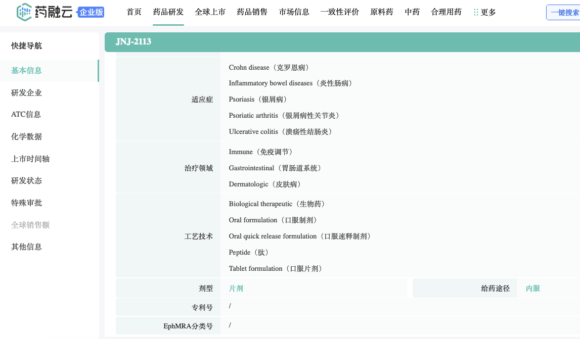 想要解锁更多药物研发信息吗?查询药融云数据库(vip.pharnexcloud.com/?zmt-mhwz)掌握药物基本信息、市场竞争格局、销售情况与各维度分析、药企研发进展、临床试验情况、申报审批情况、各国上市情况、最新市场动态、市场规模与前景等,以及帮助企业抉择可否投入时提供数据参考!注册立享15天免费试用!