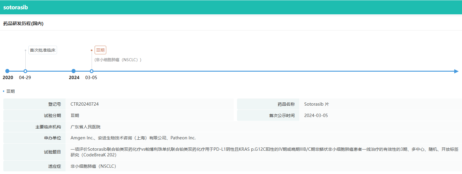 据药融云数据库显示,目前,全球范围内共有 3 款 KRAS G12C 抑制剂获批上市,分别为安进的索托拉西布、百时美施贵宝的阿达格拉西、信达/劲方医药的氟泽雷塞。在国内,除了信达的氟泽雷塞外,正大天晴/益方生物的格舒瑞昔已于 2023 年 12 月申报上市,加科思的戈来雷塞也在 2024 年 5 月递交了上市申请。