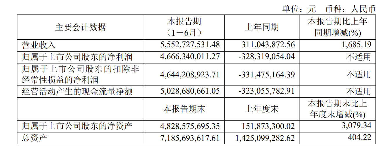 8月23日晚,百利天恒发布2024年半年度报告,报告期内,公司实现营业收入约55.53亿元,较上年同期增加1685.19%,其中药品销售收入2.2亿元,创新药的商业拓展(Businessdevelopment)收入53.32亿元。归属于上市公司股东的净利润46.66亿元,同比扭亏,上年同期净亏损3.28亿元。公司营业收入大幅增长主要是由于收到海外合作伙伴全球跨国药企BMS基于BL-B01D1合作协议的8亿美元不可撤、不可抵扣的首付款。