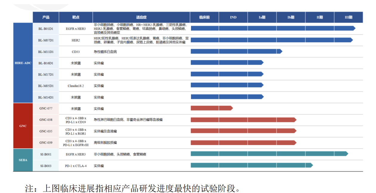 报告期内,百利天恒处于临床研究阶段或IND申报阶段的核心创新生物药研发管线的整体进展情况如下图所示: