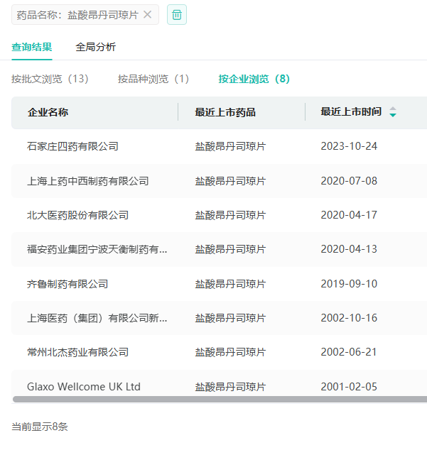 昂丹司琼原研来自葛兰素史克。作为国内市场上的重要药物,除原研,已有上海上药中西制药、福安药业集团宁波天衡制药、北大医药、石家庄四药、齐鲁制药在内的7家企业的获得生产批文。
