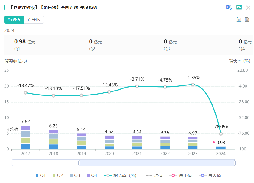 参附注射液是华润三九独家中药品种,常用的常用于治疗各种休克的中药制剂。其治疗心源性休克的相关机制包括提高心输出量,改善心功能;降低周围血管阻力,改善微循环,增加血流灌注,从而提高组织器官的灌注;抗炎和抗氧化等,通过综合作用,达到治疗目的。据药融云数据库显示,参附注射液在2023年全国院内市场的销售额超4亿元。