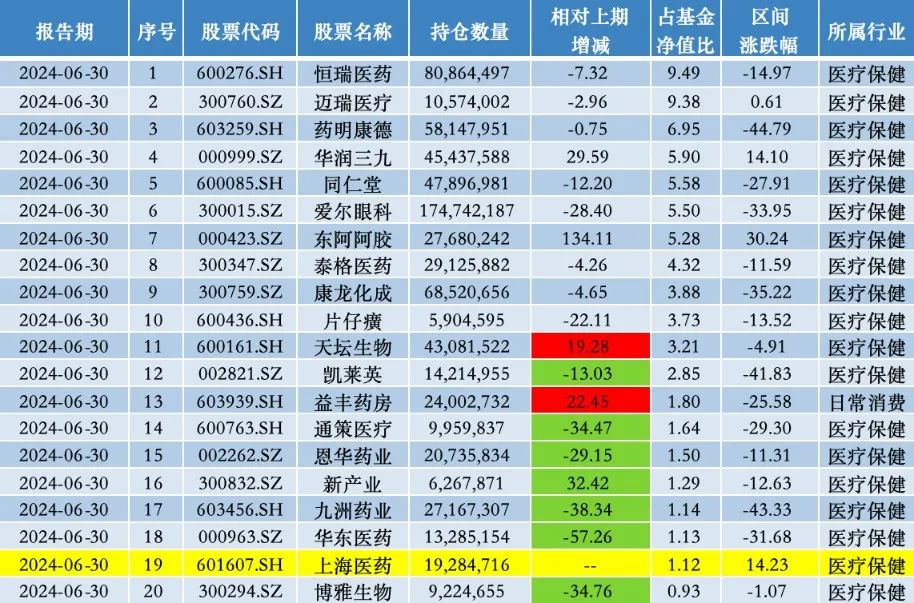 据澎湃新闻梳理,上海医药在2023年下半年被该只基金清仓后,又于2024年上半年重回持仓名单中。