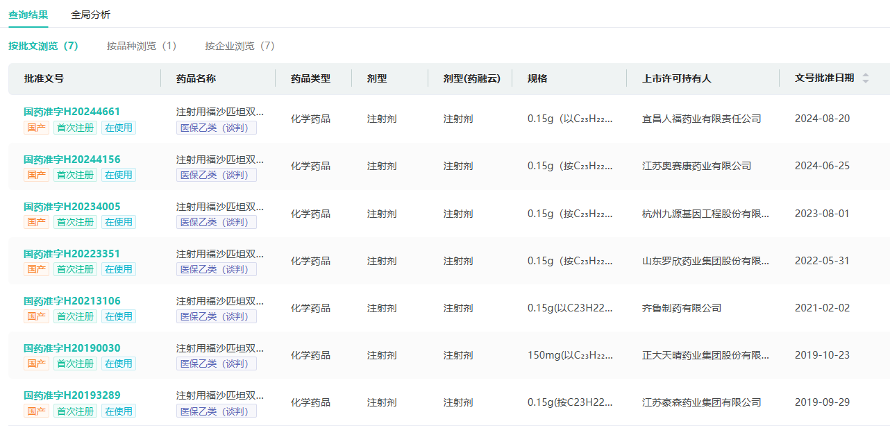截图来源:药融云中国药品批文