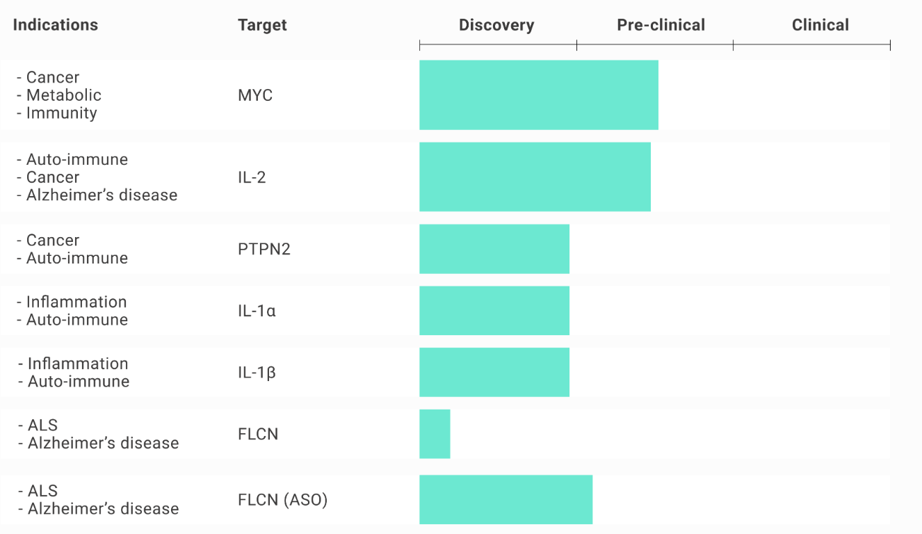 Genetic Leap正在人工智能和RNA基因医学的前沿进行创新,以重新定义药物开发,并更快地满足数百万人的健康需求。Genetic Leap正在推进一个跨越内部和合作项目的管线,跨越新的和已建立(但传统上无法用药)的疾病靶点。