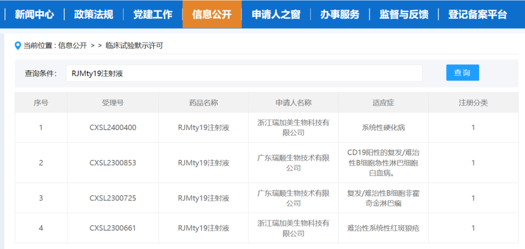 近日,据CDE官网公示,广东瑞顺生物技术有限公司(下称“瑞顺生物”)申报的RJMty19注射液的新药临床试验(IND)申请获国家药品监督管理局(NMPA)药品审评中心(CDE)默示许可,拟用于治疗系统性硬化病。这款候选产品此前已获批3项默示许可。