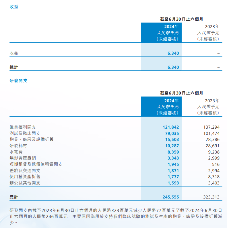 然而,公司净亏损约为人民币3.52亿元,尽管较去年同期的约人民币4.04亿元有所减少。管理层认为,该减少主要由于(i)以股份为基础的薪酬减少,截至2024年6月30日止六个月总计约为人民币900万元,较截至2023年6月30日止六个月的约人民币1900万元减少约人民币1000万元;(ii)研发开支减少;及(iii)截至2024年6月30日止六个月确认收益约人民币600万元,之前并无录得任何收益。