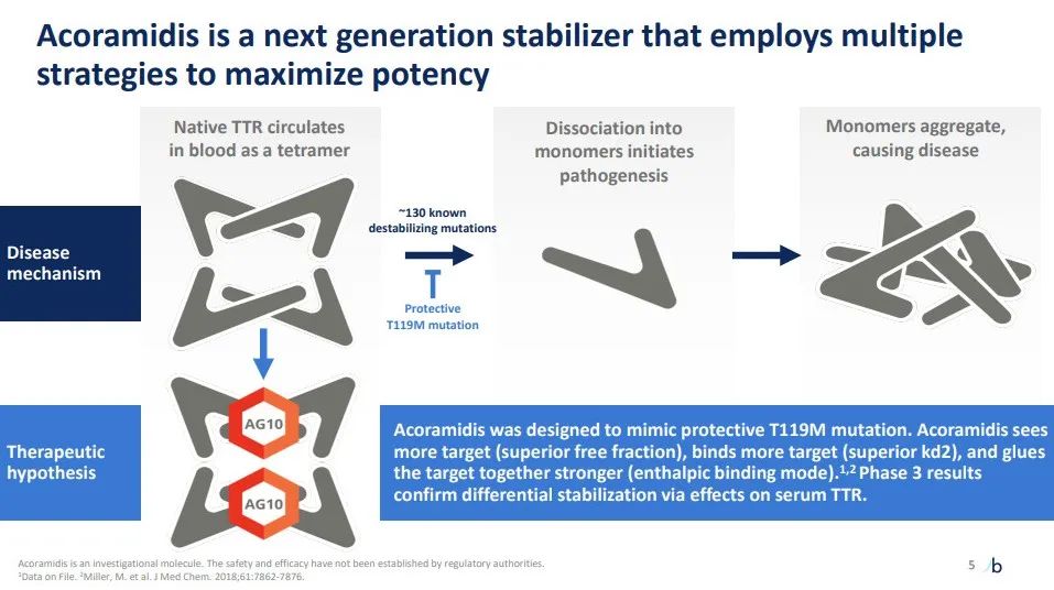 BridgeBio公司目前的主要工作是为其转甲状腺素蛋白淀粉样变性心肌病(ATTR-CM)药物acoramidis可能获得批准做准备,美国FDA将于11月29日对该药物做出决定。Acoramidis是一种口服、强效、高选择性小分子转甲状腺素蛋白(TTR)稳定剂,用于治疗ATTR-CM。BridgeBio已授予拜耳(Bayer)公司在欧洲商业化acoramidis用于治疗ATTR-CM的独家权利。