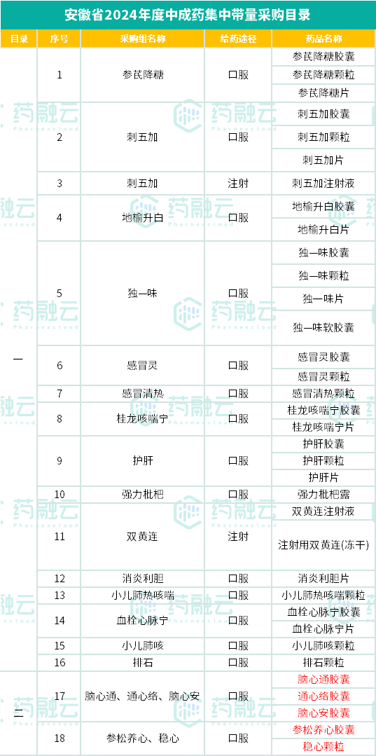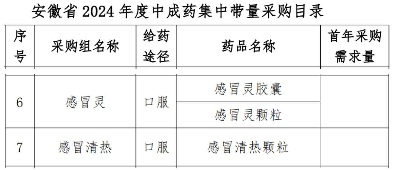 截图来源:安徽省 2024 年度中成药集中带量采购文件