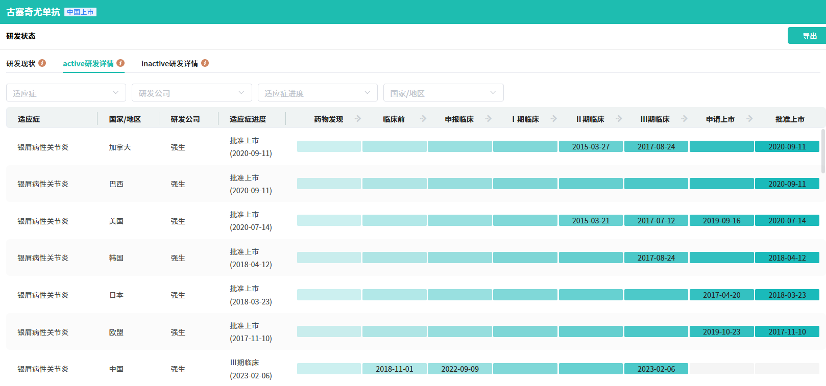想要解锁更多药物研发信息吗?查询药融云数据库(vip.pharnexcloud.com/?zmt-mhwz)掌握药物基本信息、市场竞争格局、销售情况与各维度分析、药企研发进展、临床试验情况、申报审批情况、各国上市情况、最新市场动态、市场规模与前景等,以及帮助企业抉择可否投入时提供数据参考!注册立享15天免费试用!