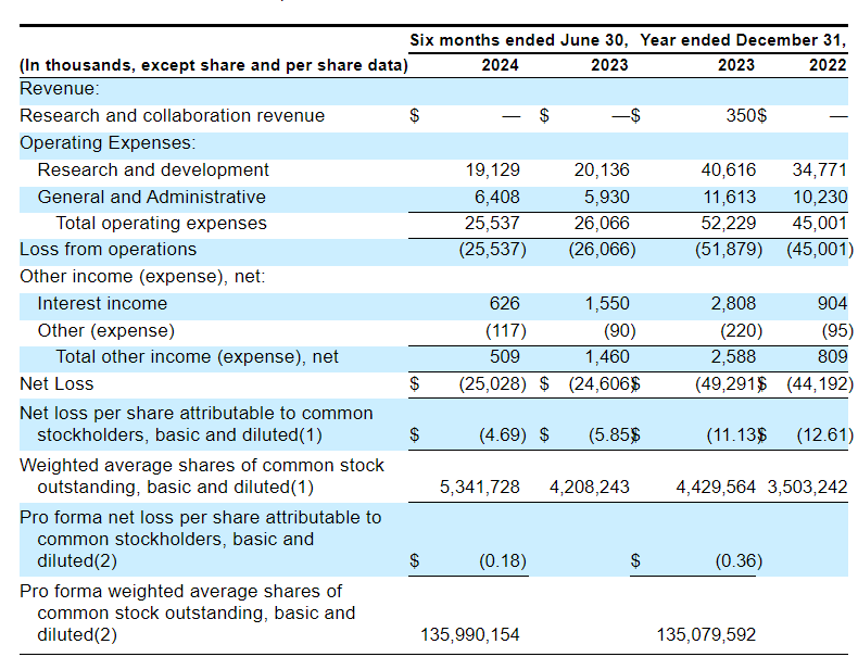 CAMP4 2024年上半年亏损2503万美元,而去年同期亏损2461万美元。迄今为止,尚未产生任何收入。