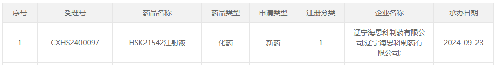 9月23日,据CDE官网公示,海思科申报的HSK21542注射液上市申请获得受理。据海思科公告显示,该项上市申请此前已经被CDE纳入优先审评,针对适应症为治疗成人维持性血液透析患者的慢性肾脏疾病相关的中度至重度瘙痒。