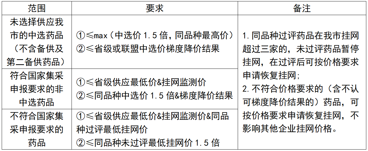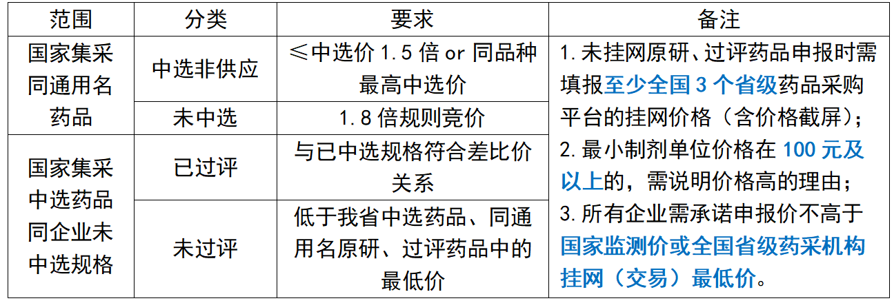 7月23日,河北省发布《关于开展集采同通用名药品竞价挂网的通知》,明确采购周期内中选但未选择我省的药品需重新报价,且申报价不高于本企业药品现行中选价1.5倍或同品种最高中选价(具体见下表1)。