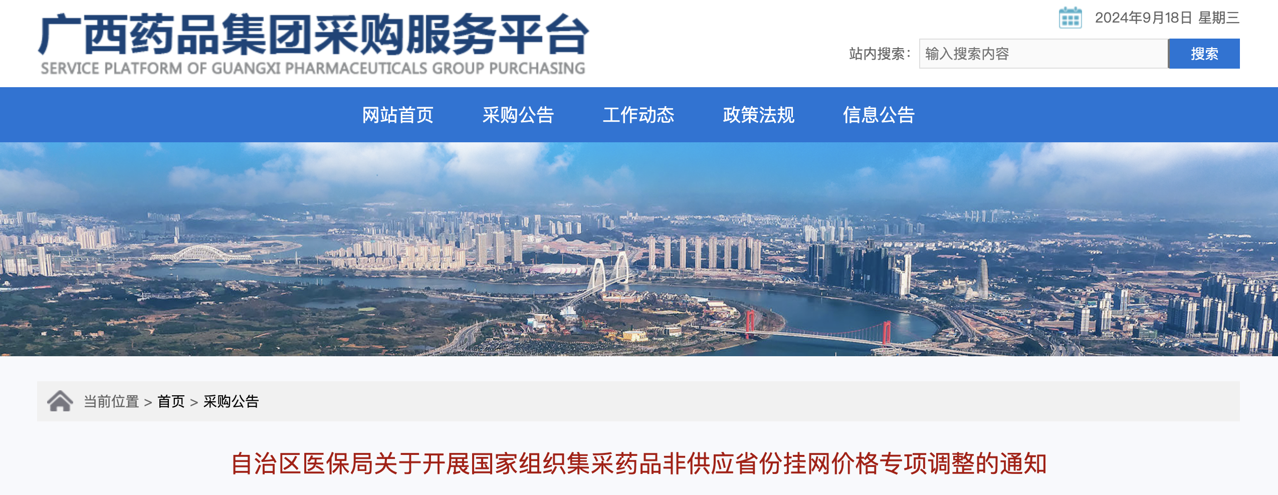 近日,广西自治区医保局发布《关于开展国家组织集采药品非供应省份挂网价格专项调整的通知》,要求相关企业于9月20日前完成价格调整,名单涉及403个药品,涉及158个生产企业,(详细企业名单见文末名单)。