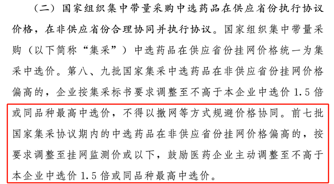 早在年初国家医保局发布的《关于促进同通用名同厂牌药品省际间价格公平诚信、透明均衡的通知》中就提到,要鼓励前七批中选药品在非供应省份价格按照八、九批价格管理。各省市对于国采药品非供应省份价格治理最早在河北、天津开展。