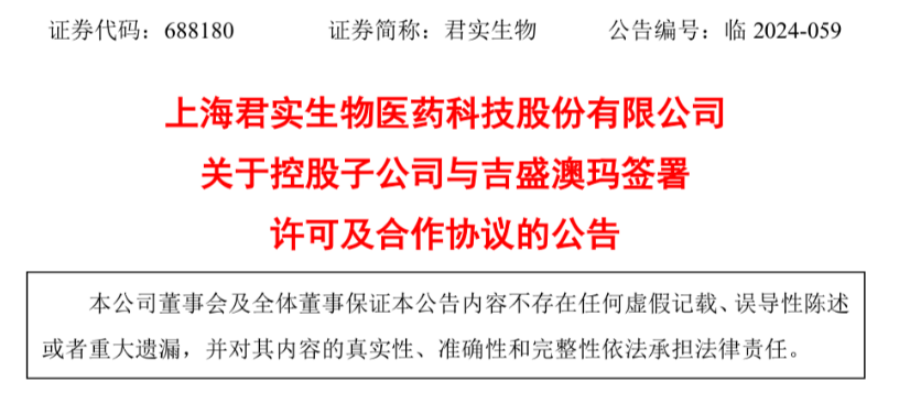君实生物(688180)9月26日晚间公告,2024年9月26日,公司控股子公司君拓生物与南京吉盛澳玛生物医药有限公司(简称“吉盛澳玛”)签署了《IAMA-001鼻喷剂型项目许可及合作协议》。