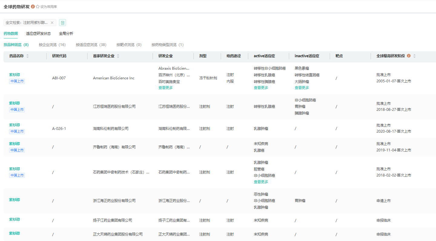 国内企业「注射用紫杉醇」的研发详情