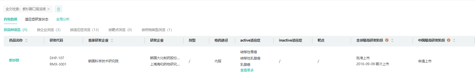 「紫杉醇口服溶液」的研发现状