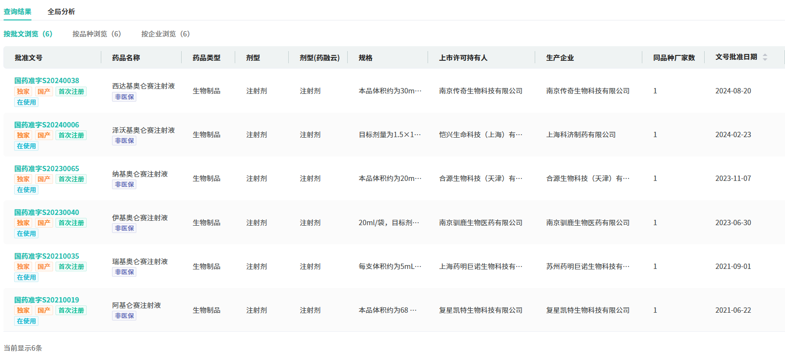 截止到目前,国内共批准了6款CAR-T细胞疗法上市:阿基仑赛注射液(商品名:奕凯达,复星凯特),瑞基奥仑赛注射液(商品名:倍诺达,药明巨诺),伊基奥仑赛注射液(商品名:福可苏,驯鹿生物/信达生物),纳基奥仑赛注射液(商品名:源瑞达,合源生物),泽沃基奥仑赛注射液(商品名:赛恺泽,科济生物/华东医药),西达基奥仑赛注射液(商品名:卡卫荻,传奇生物)。