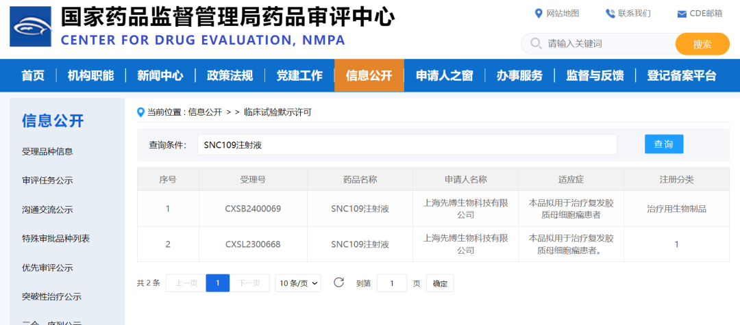 5. 上海先博生物:SNC109注射液