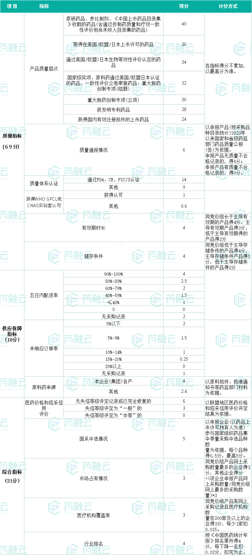 商务标满分100分,依据企业报价高低计算得分。企业申报报价,每个品种仅须选择任意一个规格包装申报商务标报价,申报价格含多个规格包装的,以差比后价格最低的作为正式报价的规格包装。